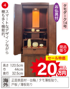 あったかい木のぬくもりのお仏壇 お手入れラクラク!!銘木揃い。